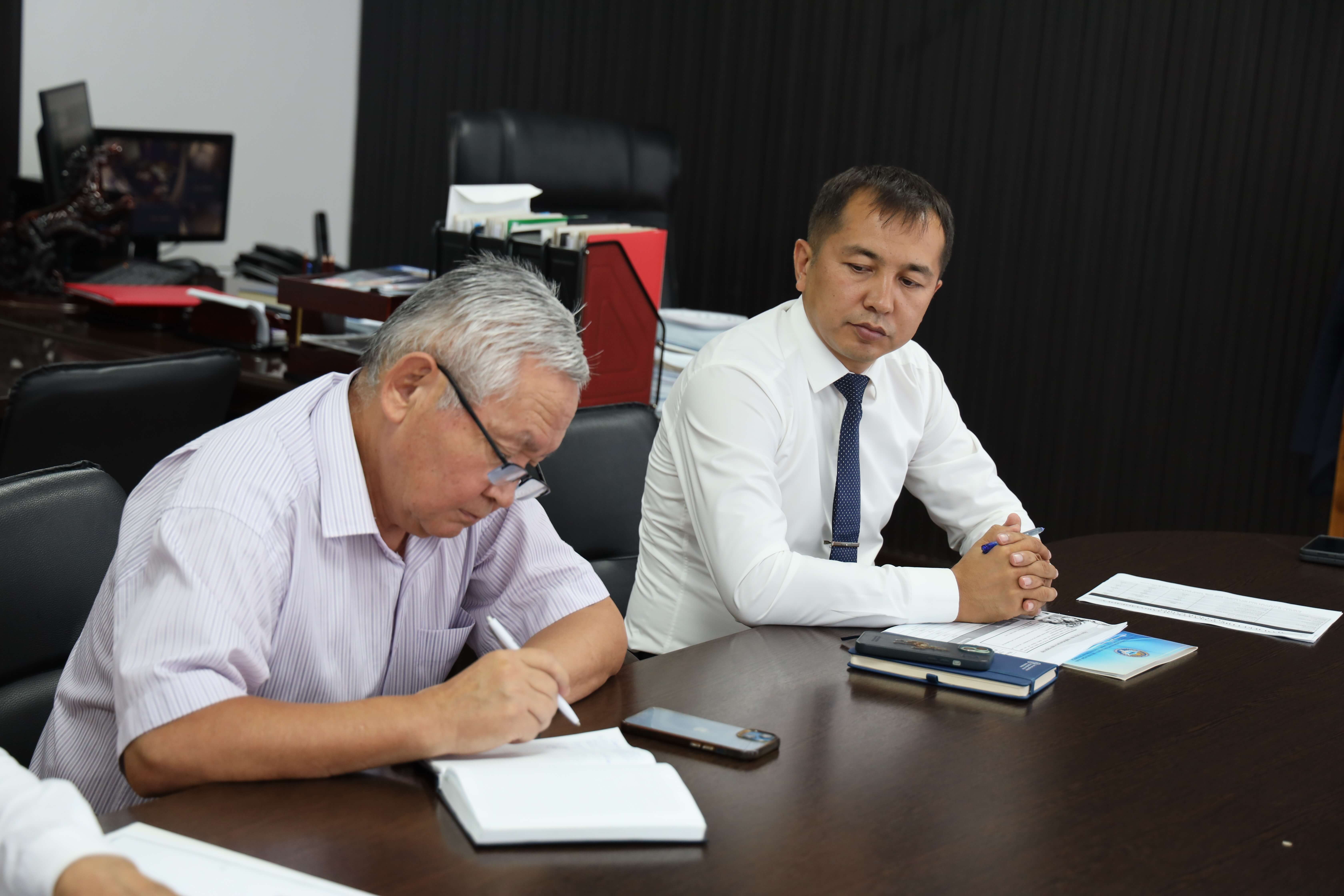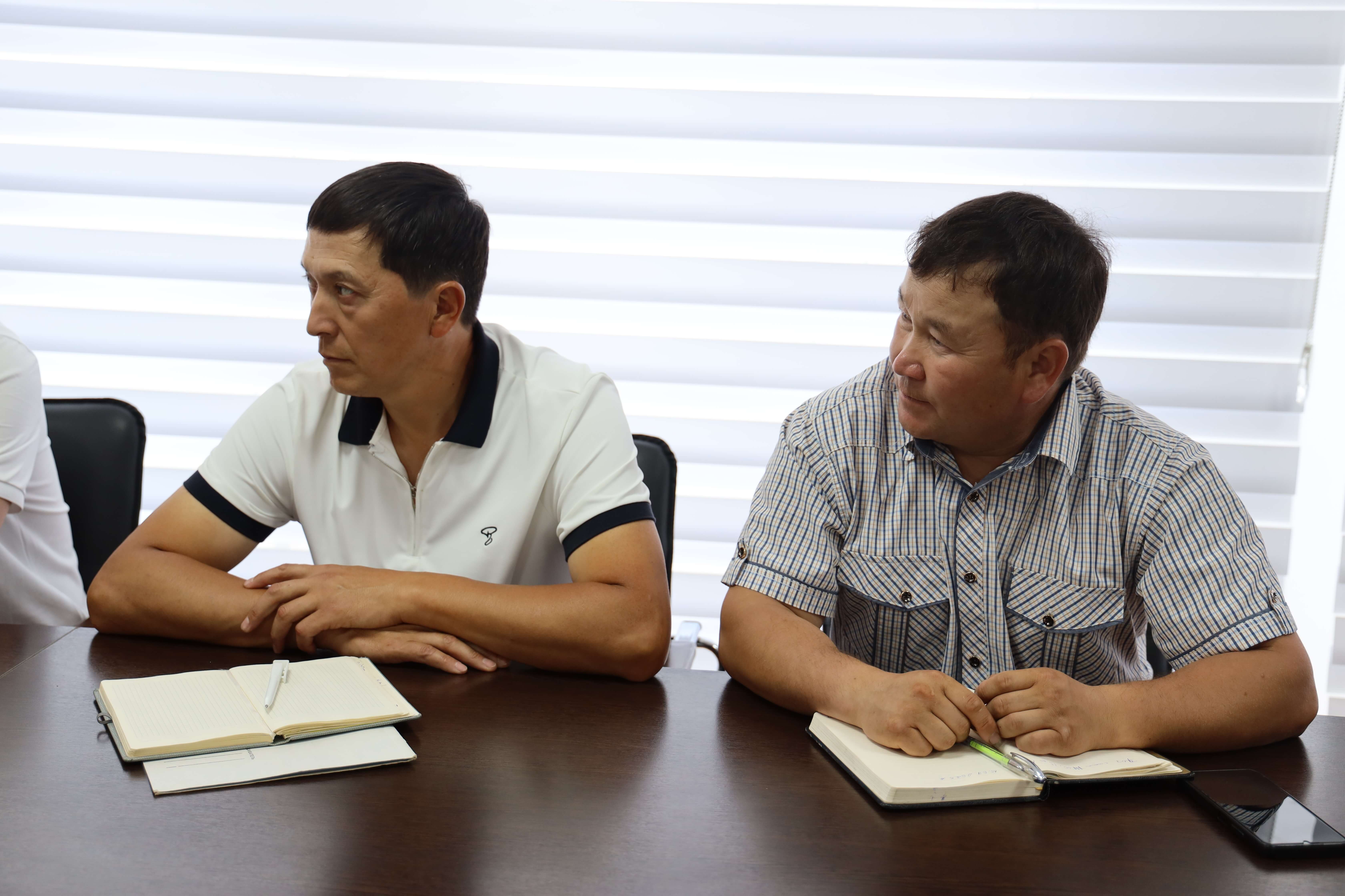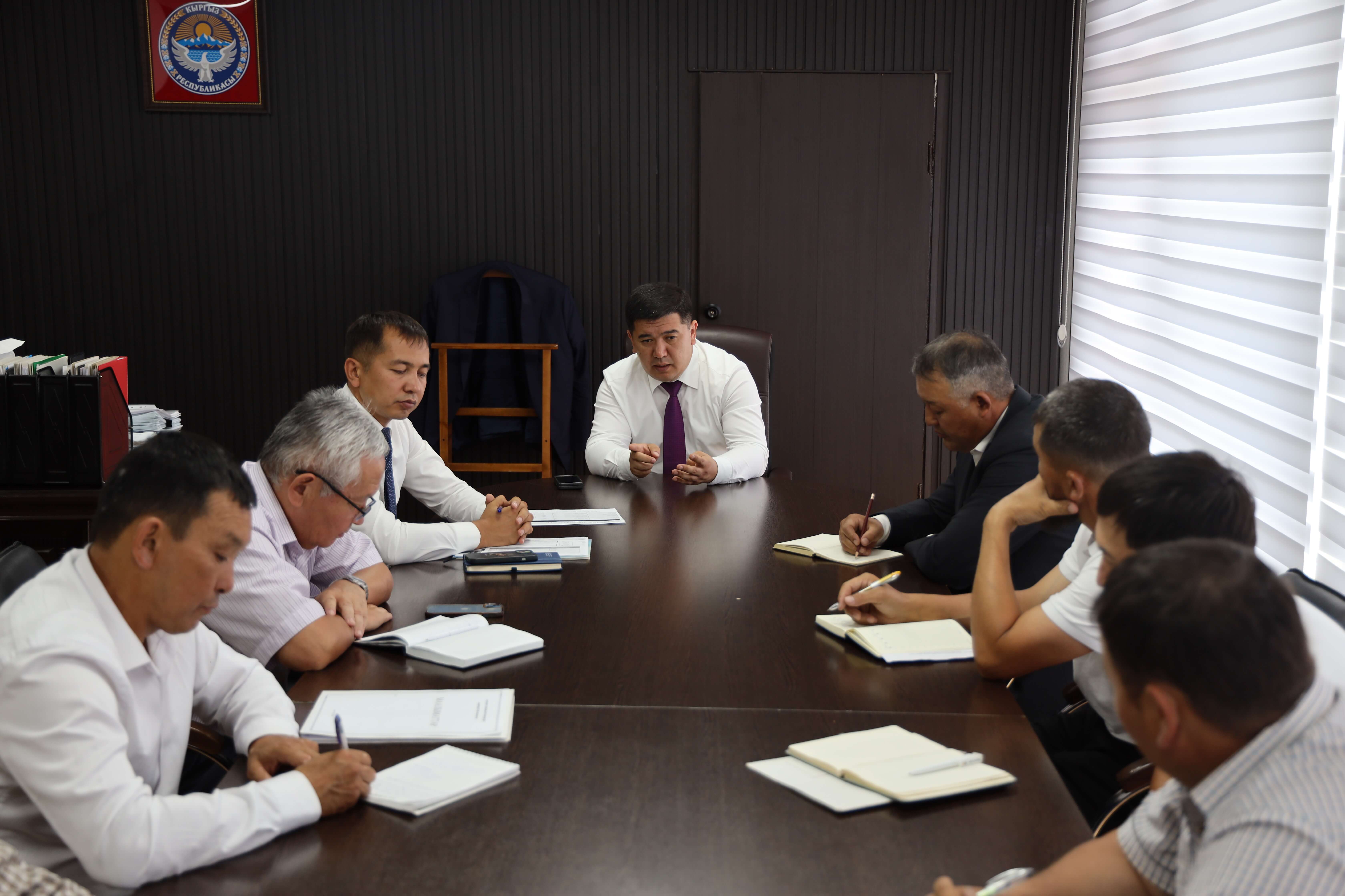 Директор Службы ветеринарии, развития животноводства, пастбищ и кормов Улугбек Кожобергенов провёл рабочее совещание с руководителями государственного предприятия «Кыргызский государственный племенной завод», недавно вошедшего в структуру Службы, а также с руководителями его областных филиалов.